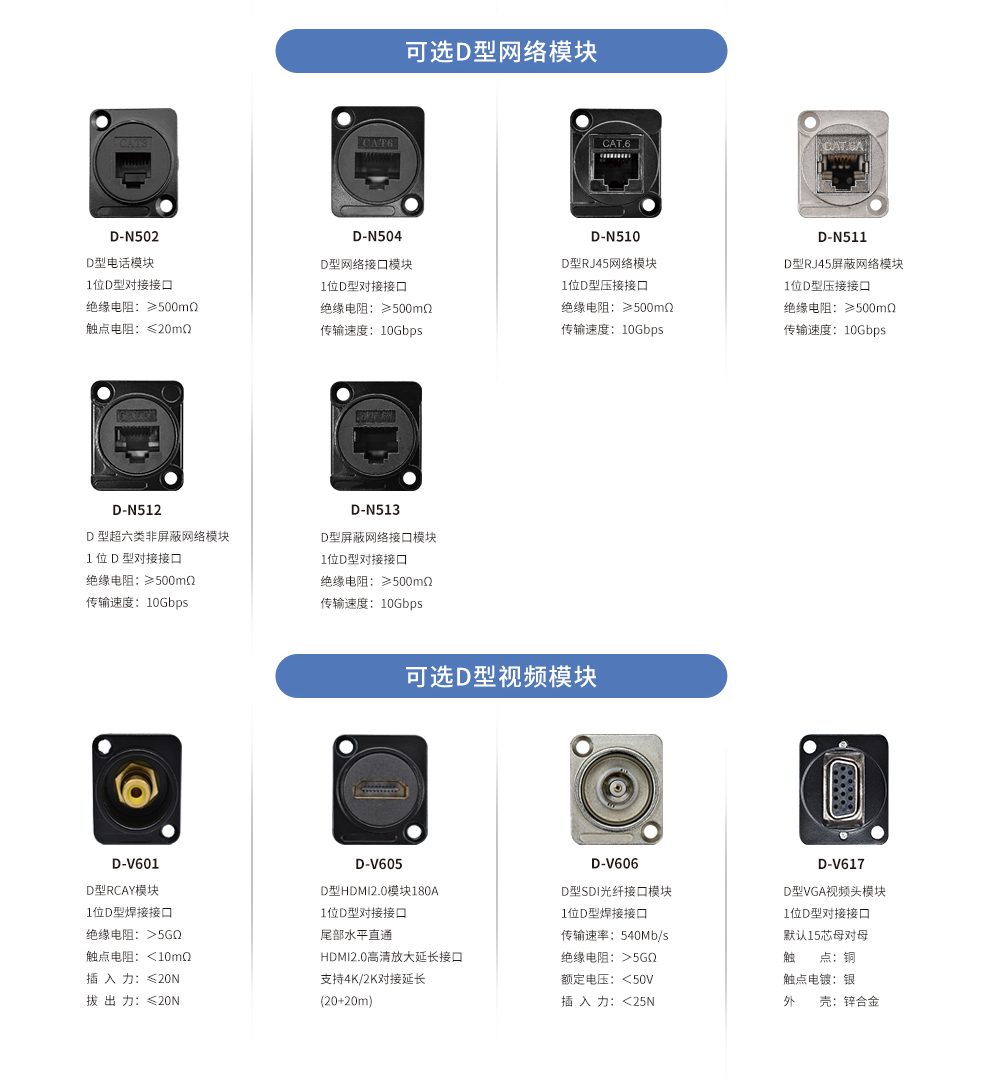 | 配置 | 一位5孔国标AC插座,四位可选D型接口模块 |