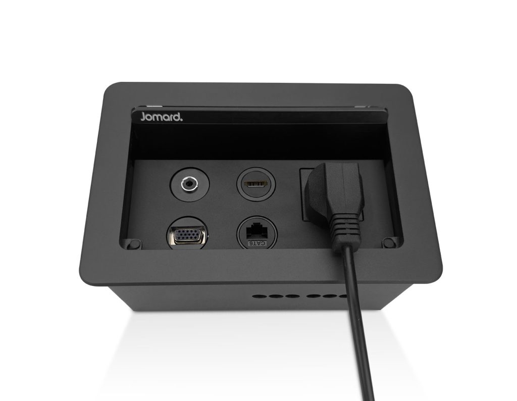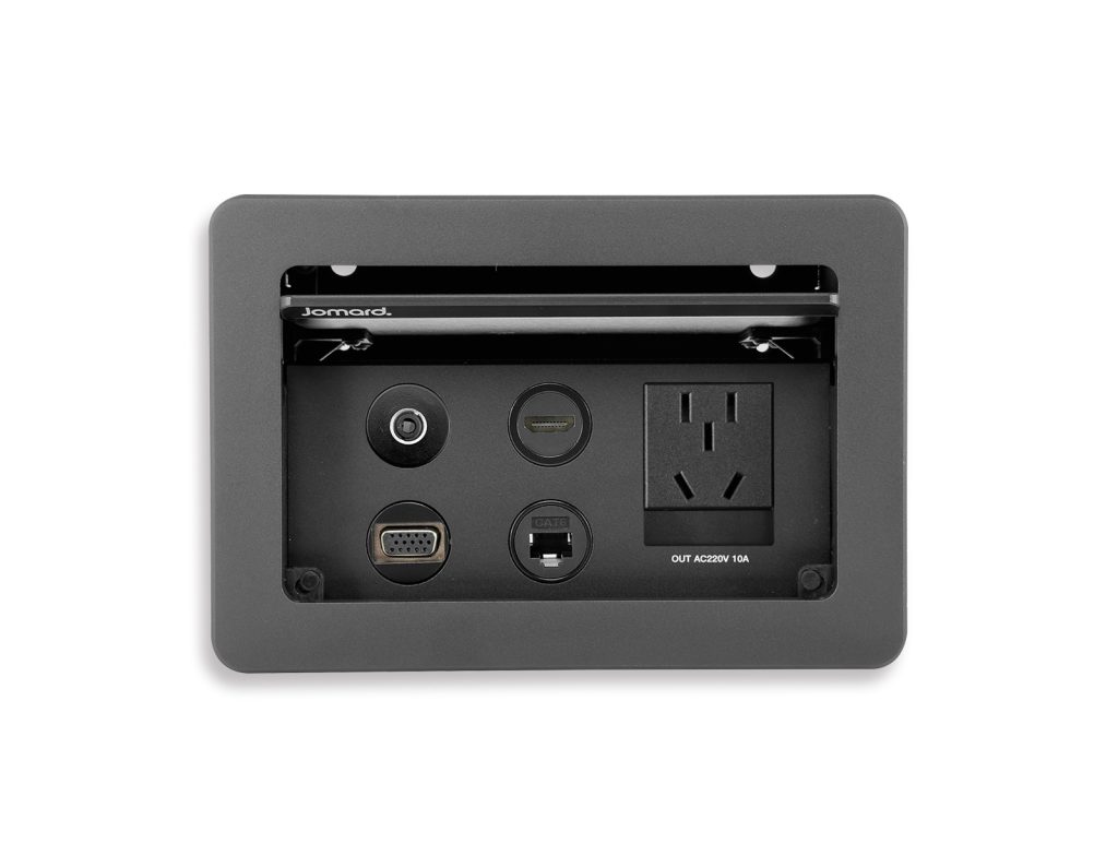 翻盖式媒体接口盒是在产品基础上改进开发,更好的解决了用户遇到的问题,增加了可靠性、适用性,使用更加方便。可隐藏于桌面安装,模块化搭配,有效解决各种外设线缆的简单、有序、美观的链接。采用翻盖式下沉隐藏装饰板,产品使用保持整洁与美观,适用于多种会议系统、学术交流、信息管理、网络办公及各种会展演示等领域的使用。