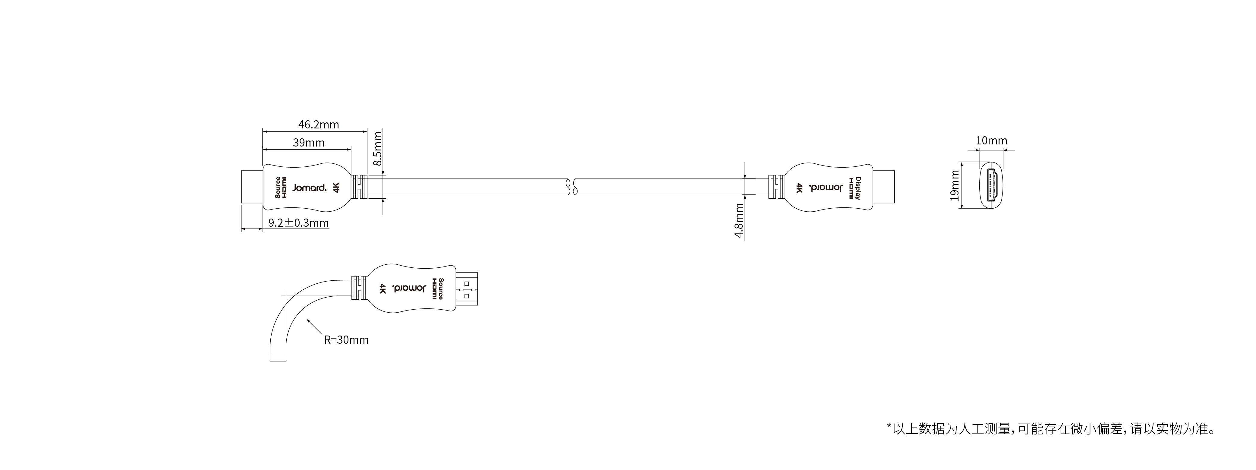 | 接头构件 | HDMI 2.0光纤模组+锌合金外壳 |