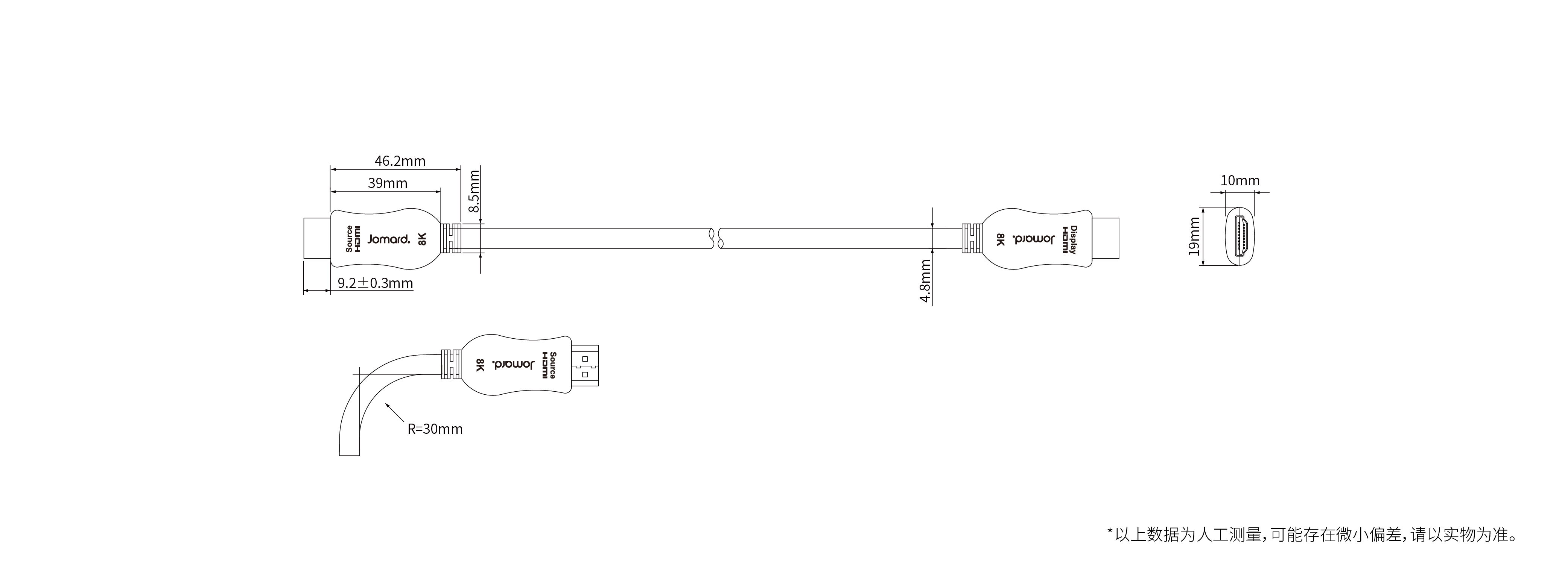 | 接头构件 | HDMI 2.1光纤模组+锌合金外壳 |