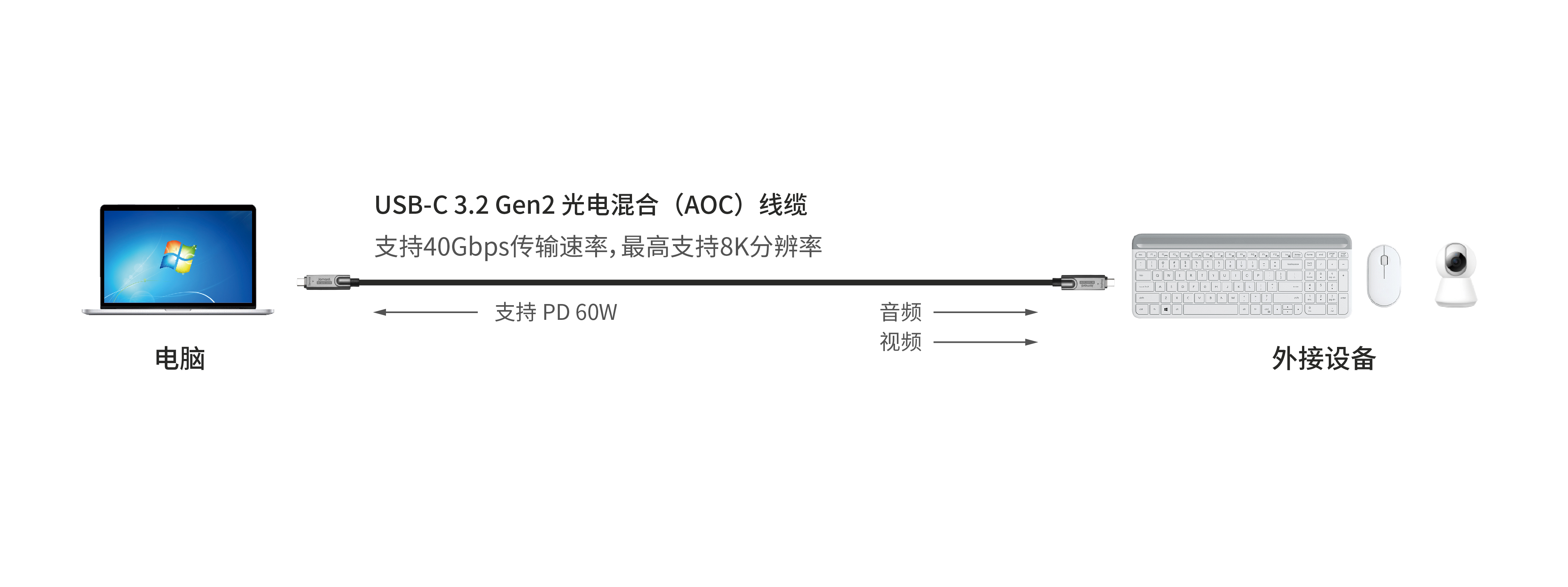 | 线缆名称 | USB-C 3.2 Gen2 光电混合(AOC)线缆 |