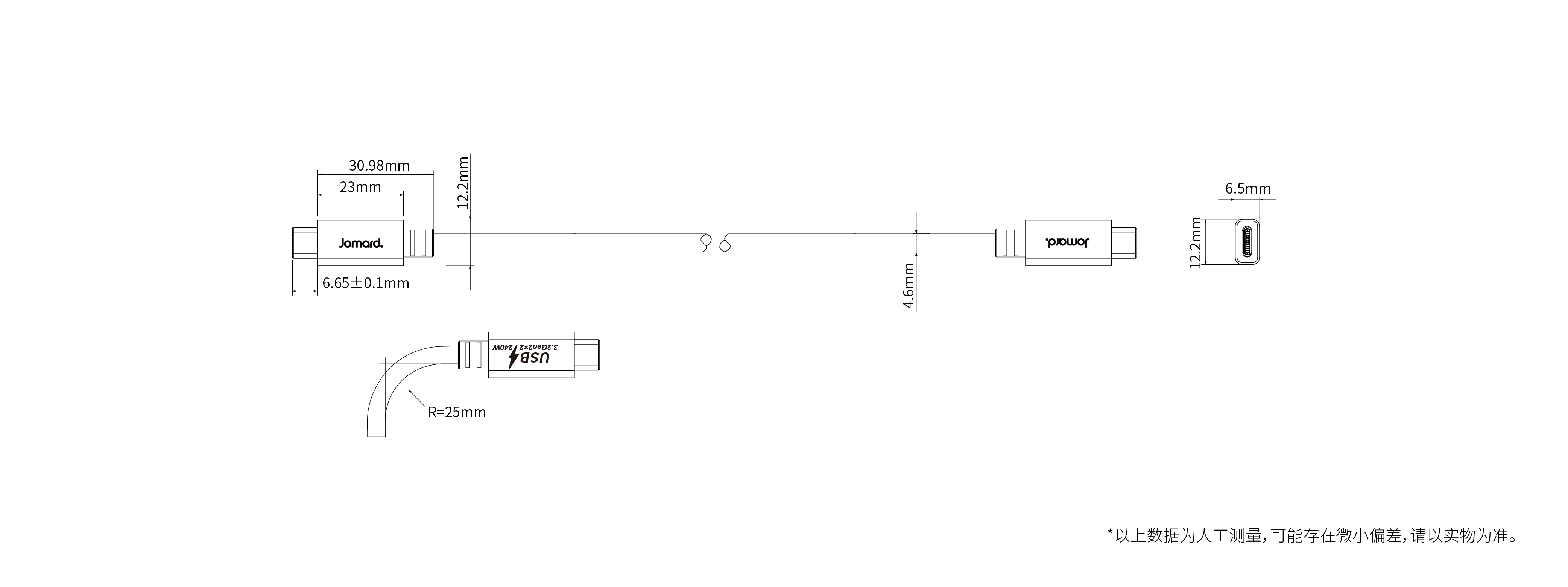 | 弯曲半径 | 静态≥25mm,动态≥50mm |