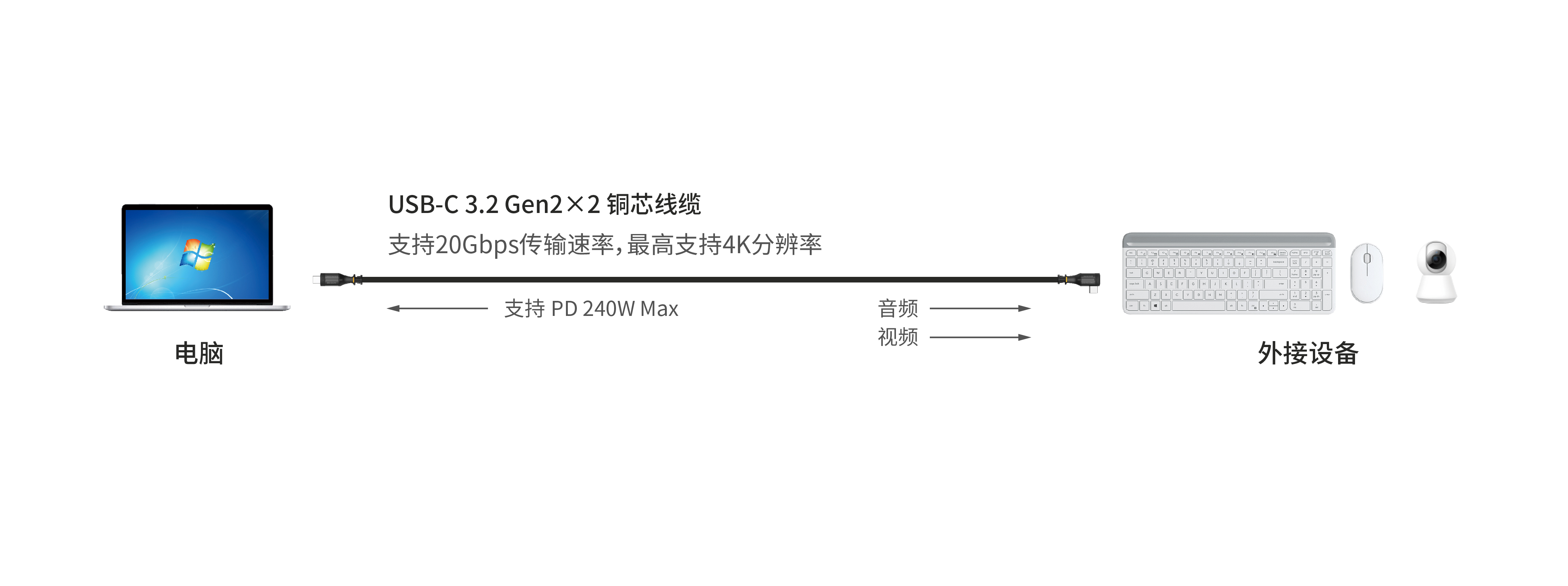 | 线缆名称 | USB-C 3.2 Gen2×2 铜芯线缆 |